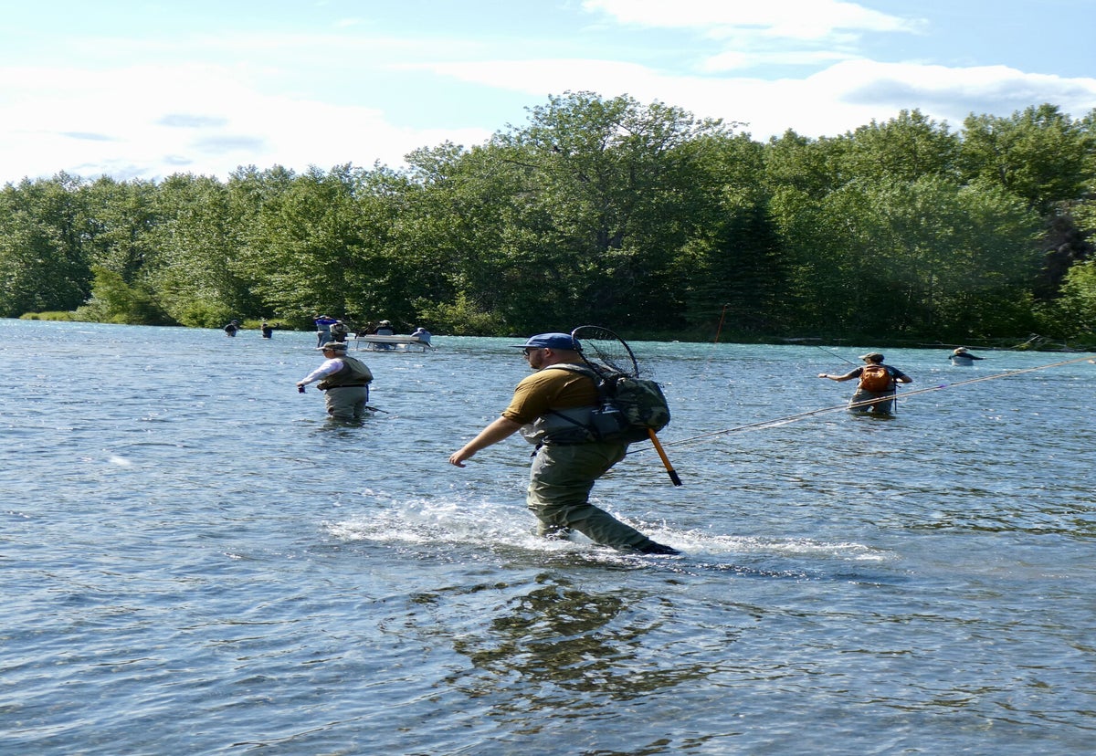 Die gefangenen Fische werden auf einem speziell dafür montierten Tisch direkt im Fluss ausgenommen und die Überreste gehen zurück ins Wasser oder werden von wartenden Möwen oder Weisskopfadlern dankend abgeholt. Ein Schauspiel!