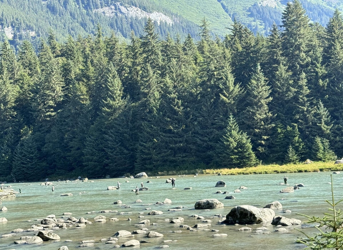 Wir wechseln für eine weitere Nacht zum Chilkoot Lake Campground, welcher ziemlich bald ausgebucht ist. Am und im Chilkoot River hat es Dutzende von Fischern, welche nach Lachsen angeln.