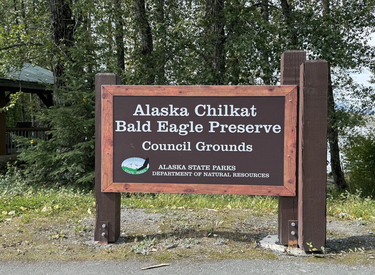 Im Alaska Chilkat Bald Eagle Schutzreservat, wo die Flüsse Chilkat, Tsirku und Kleheni zusammentreffen, bleibt es im Winter etwa vier Grad wärmer, weshalb der Fluss an dieser Stelle nicht zufriert und die etwa 4000 Weisskopfseeadler überwintern und sich von Fischen ernähren können. Leider sind wir vermutlich einige Wochen zu früh hier und sehen nur wenige Adler.