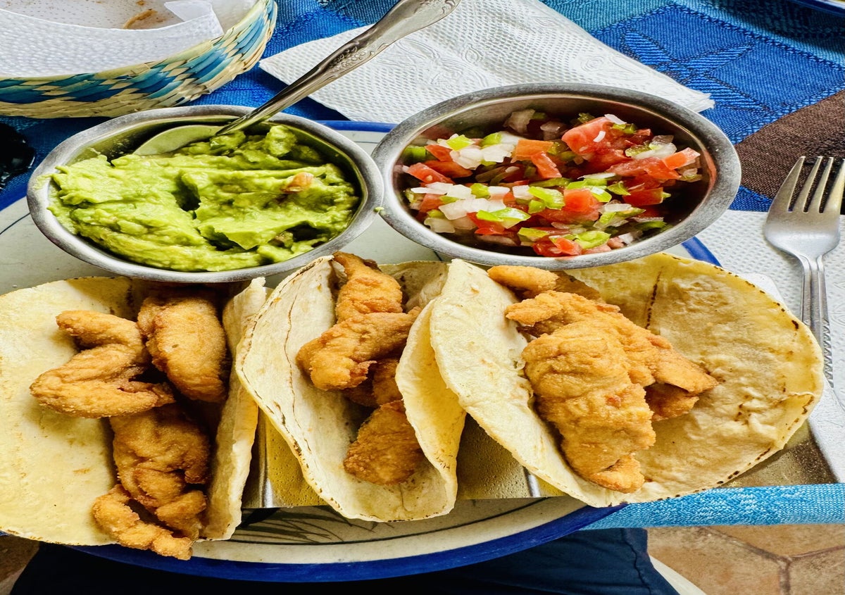 Am Nachmittag finden wir schliesslich in Heroica Mulegé wieder inmitten Palmen und Bananenbäumen einen schattigen Übernachtungsplatz für zwei Nächte. Den kurzen Weg ins nette Dorf nehmen wir gerne unter die Füsse und die Fisch-Tacos sind sehr lecker.