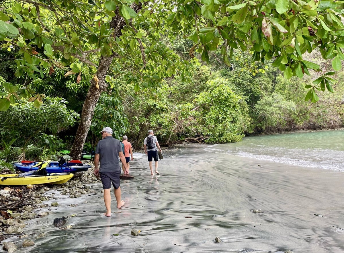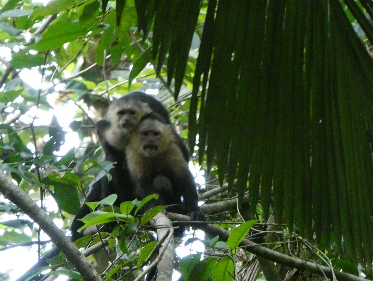 Nebst einem Gladiatorfrosch und einem Faultier mit Baby sehen wir Landkrebse, Mücken fressende Libellen, Stick-Bugs und wir hören und sehen in den Baumkronen spielende Affen. Immer wieder führt der Weg an wunderschönen Badebuchten vorbei.
