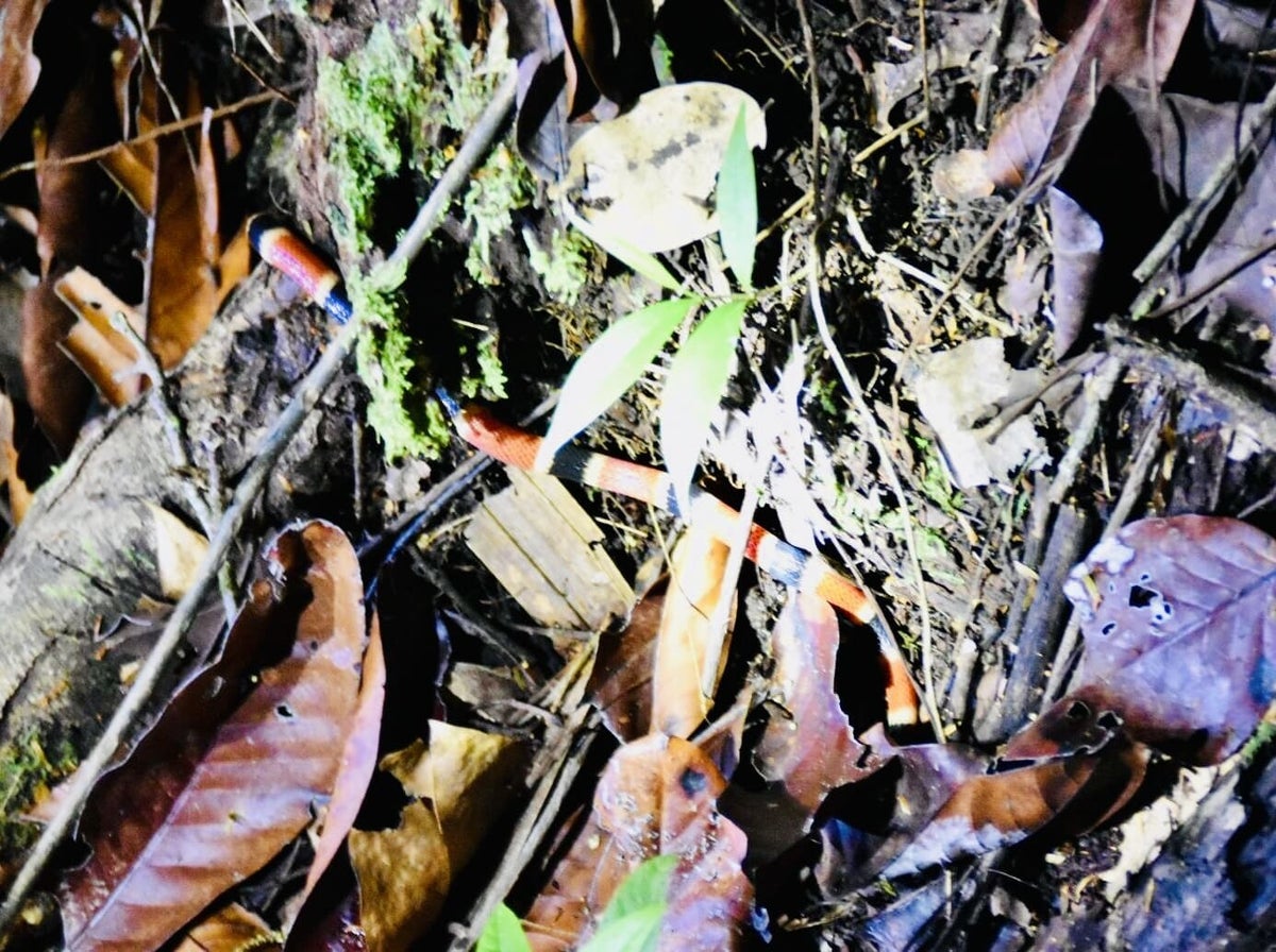 Ein Nachmittagsspaziergang durch das grosse Mawamba-Areal zeigt uns bereits eine bezaubernde Tierwelt. Gleich anschliessend werden wir wieder mit einem Boot abgeholt für den Nachtspaziergang durch den Dschungel. Bei tiefer Dunkelheit erleben wir im Lichtkegel einer Stablampe eine uns bisher unbekannte Tierwelt. Verschiedene Frösche, Spinnen, Schlangen und ungewohnte Geräusche beeindrucken uns ungemein.