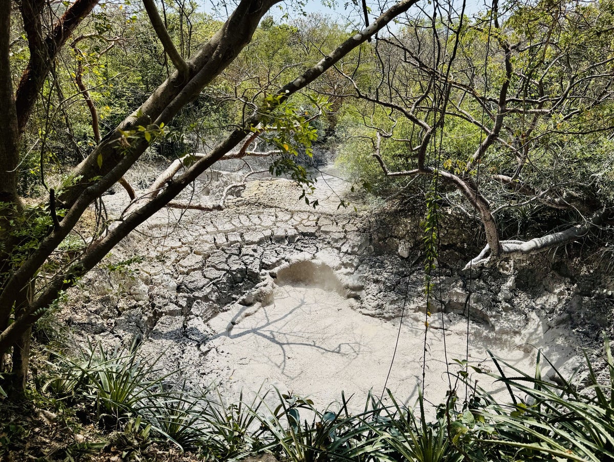 Wir wollen die angenehme morgendliche Temperatur nutzen und marschieren los Richtung Nationalpark, vorbei an geothermalen Energie-Anlagen. Den Tageseintritt von 18 US Dollars pro Person finden wir happig, müssen uns jedoch an diese Eintrittspreise in Costa Rica gewöhnen. Die markierte Rundwanderung führt uns zu lauwarmen Quellen, dampfenden, blubbernden Schlammlöchern und entlang von wunderschöner Natur. Den Rückweg zum Camping wandern wir im Schatten auf einem Biketrail. Eine schöne, wenn auch anstrengende Wanderung mit anschliessender, ersehnter Abkühlung im Pool.