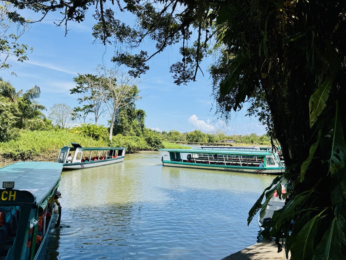 Um 6 Uhr in der Frühe gibt es ein kurzes Frühstück und eine halbe Stunde später fährt der Transfer-Bus Richtung Nationalpark. Die ganze Strecke ist 175 km, wovon 35 km unbefestigte Strasse ist und die letzten 40 km nur über das Wasser möglich sind. Also geht das letzte Teilstück während 90 Minuten per Boot weiter auf dem Rio Tortuguero, wo wir am späten Mittag in unserer Lodge ankommen.