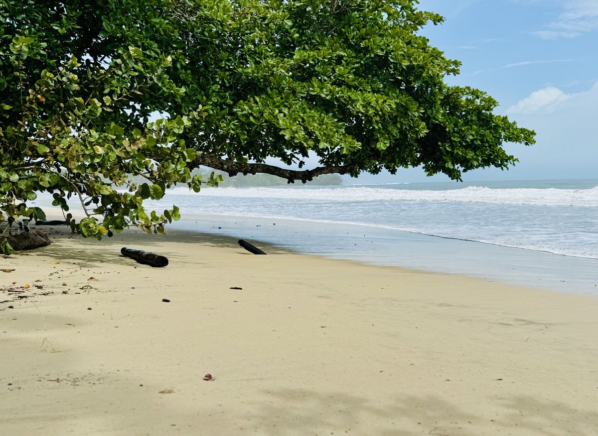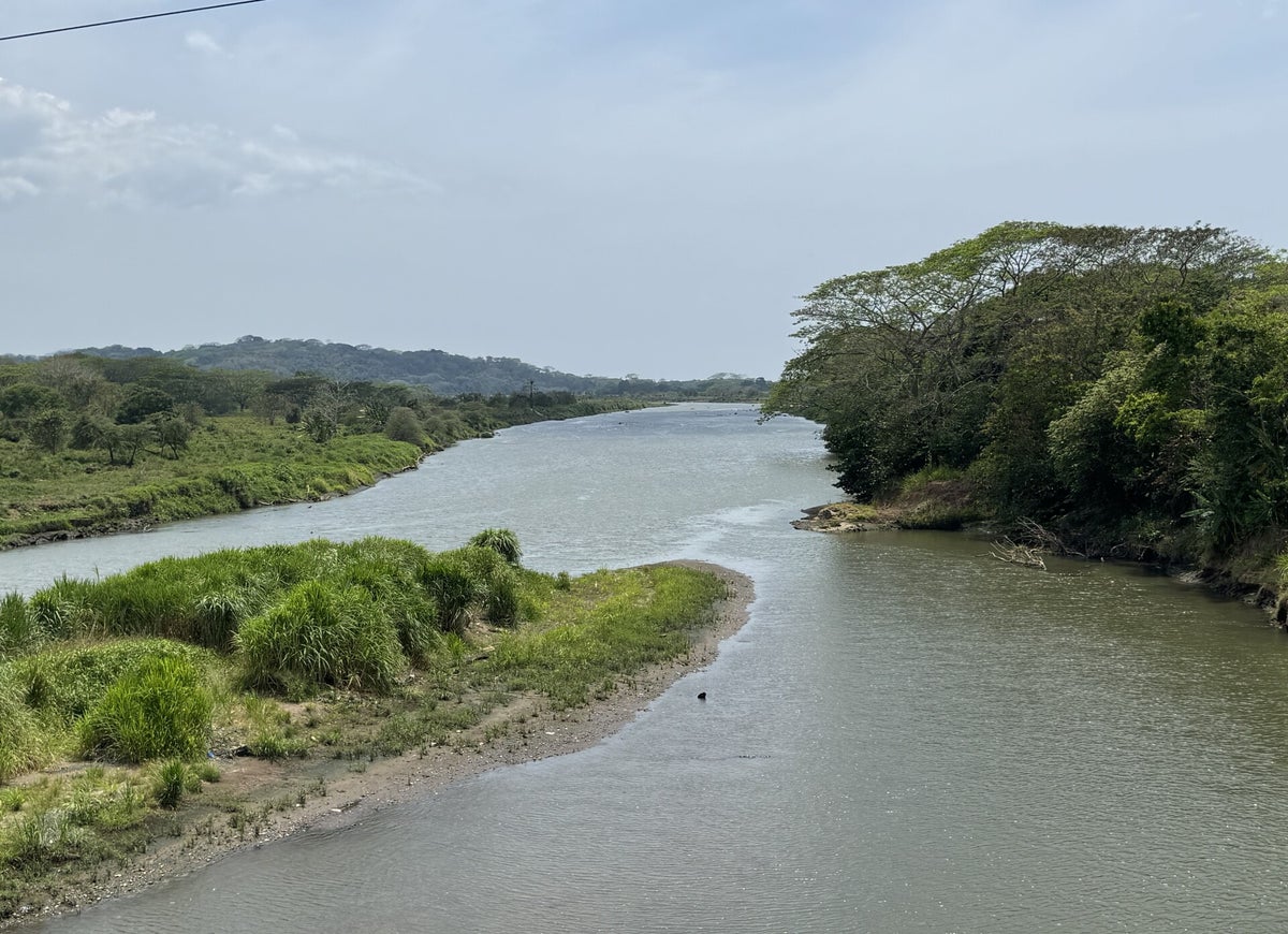 Die ganze Nacht hat es stark geregnet, was den Durchgang im Nationalpark Cahuita sehr schwierig macht. Ein Flusseinlauf ist bei unserer Ankunft etwa 40 cm breit. Wir stellen fest, dass die Fortsetzung des Weges bis knietief im Wasser liegt, also entscheiden wir umzukehren. Vermutlich im allerletzten Moment springen wir wieder über den Fluss, welcher nun innerhalb weniger Minuten um mehr als einen Meter gewachsen ist. Kurze Zeit später ist hier ein reissender Fluss und keine Überquerung mehr möglich!!
