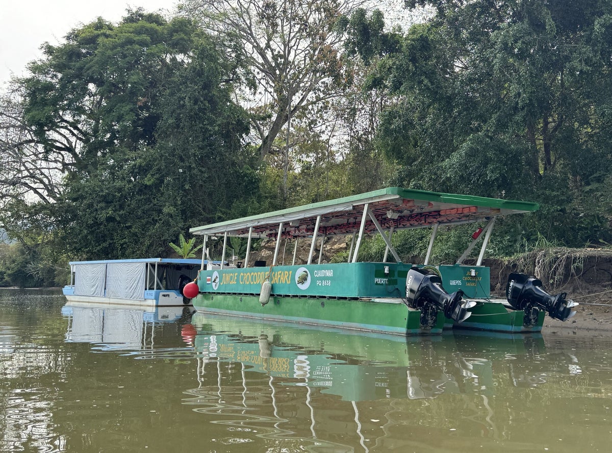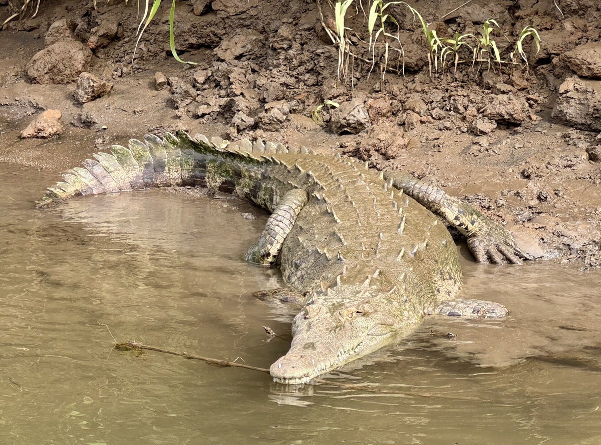Um Punkt 8 Uhr werden wir abgeholt und für die Krokodil-Tour am Rio Grande de Tarcoles abgeladen. Die Bootstour dauert zwei Stunden und wir sehen tatsächlich viele verschiedene Vögel und Krokodile aller Grössen und Altersklassen. Das älteste misst ganze 5,5 Meter, ist knapp 1'000 kg schwer und 85 Jahre alt! Wir sind beeindruckt und staunen umso mehr, als der Guide erzählt, dass vor 35 Jahren genau hier an diesem River Filmaufnahmen für den ersten Jurassicpark-Film gedreht wurden.