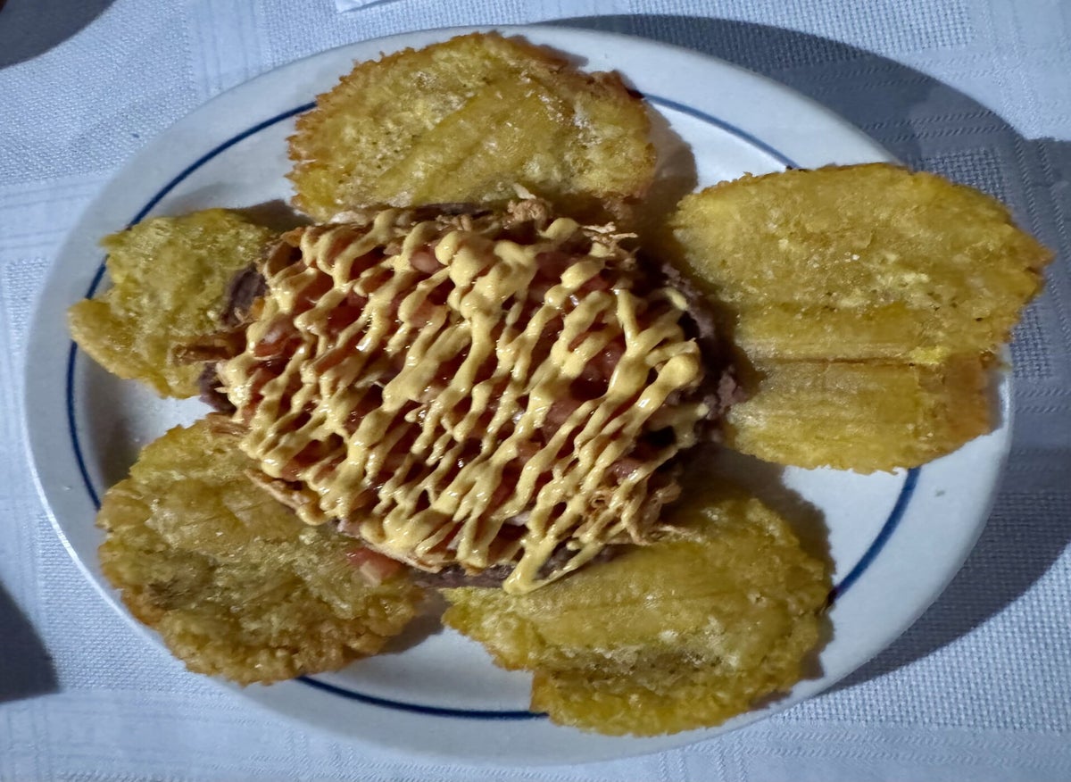 Wir lassen uns mit einem typischen Gericht von Costa Rica verwöhnen. Gebratene Platanos (Kochbananen) mit Bohnenpüree.