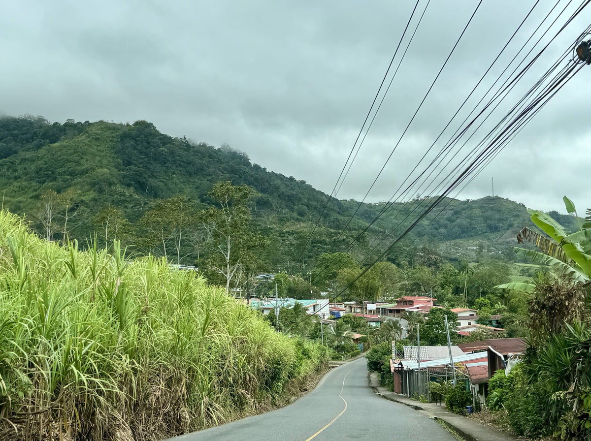 Auf dem Weg nach Süden überqueren wir die Berge der Cordillera de Talamanca. Die Strasse führt durch üppigen Bergwald und steigt bis 3'325 m Höhe an. Was in den höheren Regionen der Kaffeeanbau ausmacht, wird unter 600 Höhenmeter mit Zuckerrohr- und Ananas-Plantagen wettgemacht. Das Zuckerrohr wird in Handarbeit geschnitten, mit Ochsen geführten Karren zur Strasse transportiert und auf die grossen Lastwagen geladen.