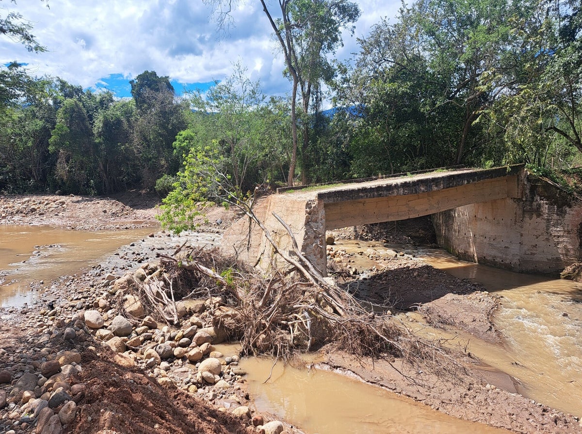 Die vorgesehene Fähre über den Rio Magdalena kann infolge Hochwasser nicht fahren, also müssen wir einen ziemlich längere Route bis zur Desierto de la Tatacoa in Kauf nehmen. Nun auch noch das Missgeschick, dass ich falsch navigiere und wir auf einer unbefestigten, immer schmaler werdenden Strasse zu der Wüste fahren. Plötzlich stehen wir vor einer abgebrochenen Brücke und sehen, dass die Motorradfahrer alle den knöcheltiefen Fluss überqueren. Adrian schaut sich die Flussüberquerung zu Fuss an und entfernt die grossen Steine aus der „Fahrbahn“. Es braucht etwas Mut, diese ungewisse Fahrt in Angriff zu nehmen, doch André schafft das mit schneller und zielsicherer Fahrweise. Bravo!