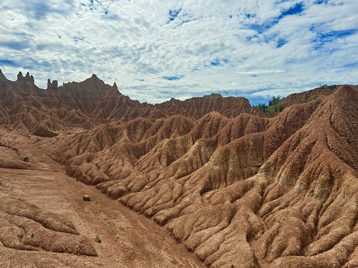 Die „Wüste“ Tatacoa mit den labyrinthmässigen Wegen entschädigt uns für die heutigen Fahrstrapazen. Tatacoa ist eigentlich keine richtige Wüste, sondern eine Landschaft aus roten und grauen Felsen, die von uralten Flüssen geschaffen wurden, durch die besondere geografische Lage zwischen zwei Gebirgszügen im doppelten Regenschatten liegt und eines der einzigartigen Ökosysteme Kolumbiens ist. Der Name Tatacoa kommt von einer ursprünglich in der Wüste heimischen, aber inzwischen ausgerotteten Schlangenart.