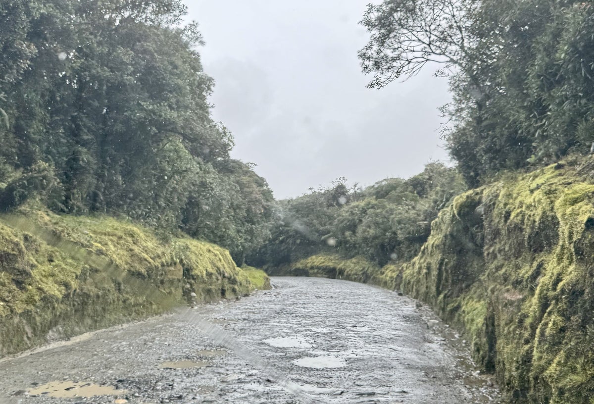 Um an die Grenze zu Ecuador zu gelangen, müssen wir ein weiteres Mal die Kolumbianischen Anden überqueren. Zwei von drei möglichen Strassen werden uns absolut nicht empfohlen, also wählen wir die Route durch den Puracé Nationalpark. Die unbefestigte, gut 40 km lange Strasse mitten durch den einzigartigen Nebelwald hat unzählige Schlaglöcher und führt auf eine Höhe von mehr als 3'200 Meter. André beweist einmal mehr seine Fahrroutine und verliert auch bei einem Tempo von 10 – 15 km/h nie die Nerven. Nach langen 11 Fahrstunden für 250 km Strecke sind wir froh, das Nachtquartier in Rosas zu beziehen.
