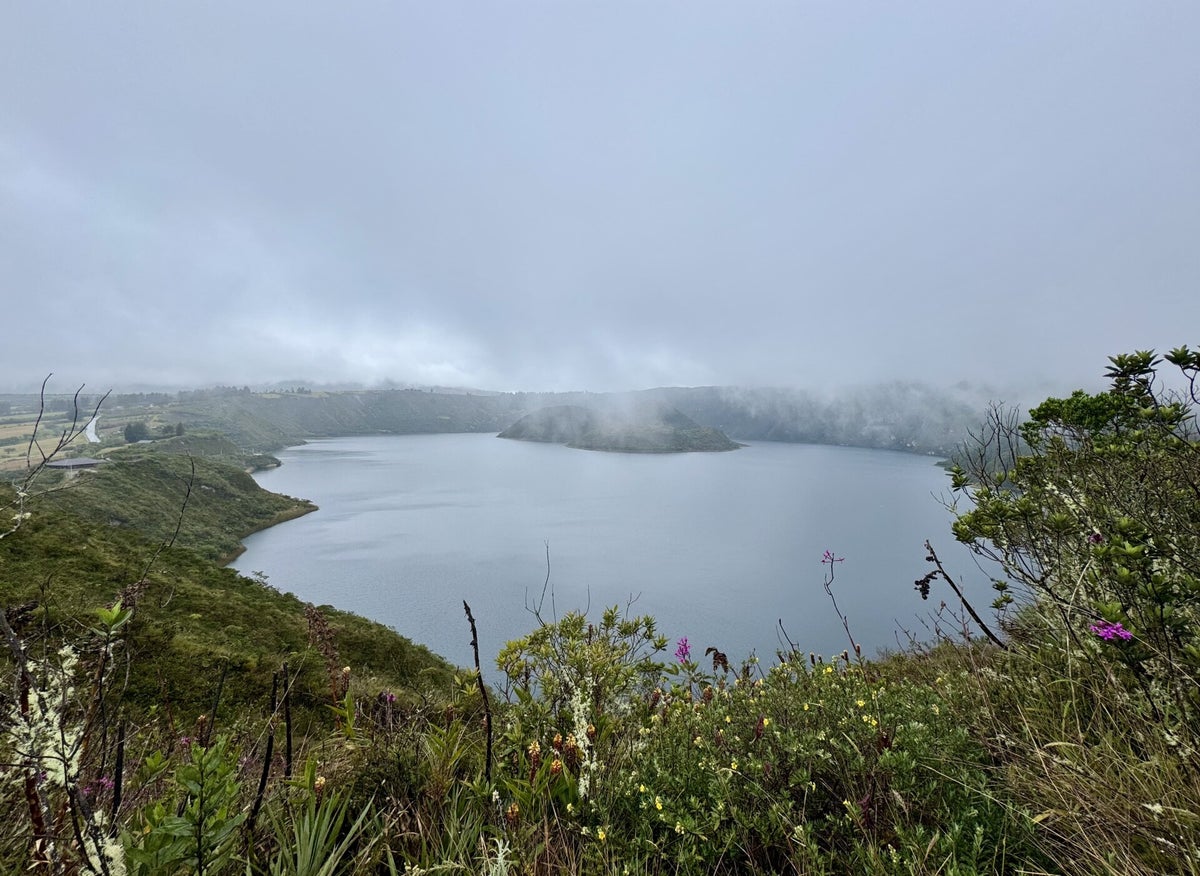 Die Umrundung der Lagune Cuicocha, unterhalb des gleichnamigen, 4'939 Meter hohen Vulkans ist unser heutiges Ziel. Leider starten wir bei Nieselregen, der sich verstärkt und der Nebel umzingelt die Berge rundum und sitzt in der Lagune fest. Trotz schlechtem Wetter ist unsere Laune hervorragend – die Flora ist extrem abwechslungsreich und die Wanderwege sehr schön angelegt. Diese Tour wird nicht umsonst als eine der schönsten Trekkingtouren in den Nordanden Ecuadors bezeichnet. Gegen Abend lichtet sich der Nebel, was uns doch noch die Aussicht auf den Kratersee ermöglicht.