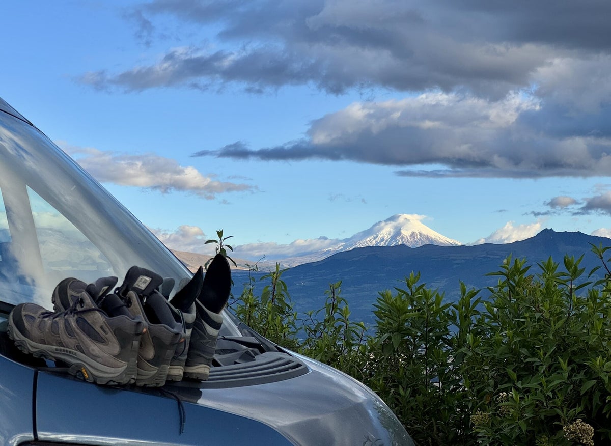 Wir besteigen nicht etwa diesen Giganten, sondern umrunden ihn mit dem Camper, was uns auf eine Höhe von 4'411 m führt! Immer wieder halten wir an und bestaunen diesen Berg, welcher sich heute von seiner lieblichsten Seite zeigt. Uns besteigt ein ganz besonderes Gefühl, da wir wissen, dass Adrian diesen Berg bezwungen hat, kurz bevor wir uns in Kolumbien getroffen haben. Diese gewaltige Leistung – Chapeau Adi!!!