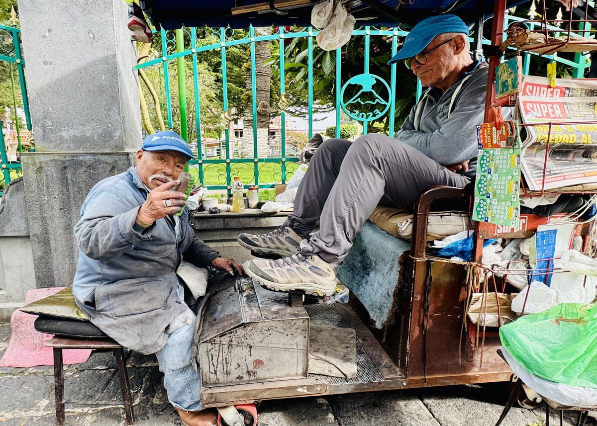 Am nächsten Morgen zeigt sich die Sonne und wir entscheiden uns für eine Wanderung zum Kreuz Bellavista, einem tollen Aussichtspunkt über der Stadt. Da die Schuhreiniger im Zeitalter der Sneakers nur noch spärlich Kundschaft haben, beschliessen wir, unsere Wanderschuhe gleich bei der Rückkehr reinigen zu lassen – zur Freude unseres Schuhputzers. Der grosse Hunger bleibt vorerst aus, als wir beim Cuy-Grill (Meerschweinchen) vorbeikommen ;-)