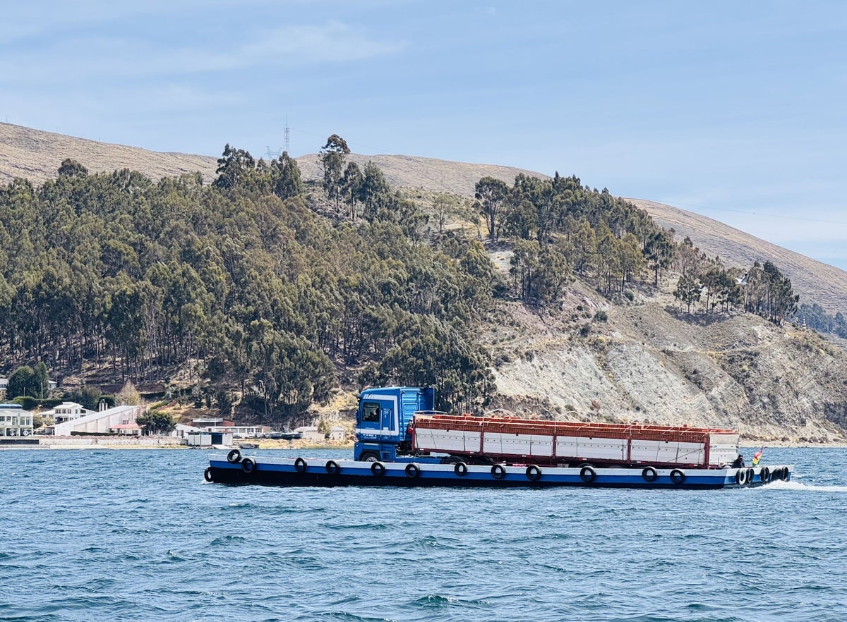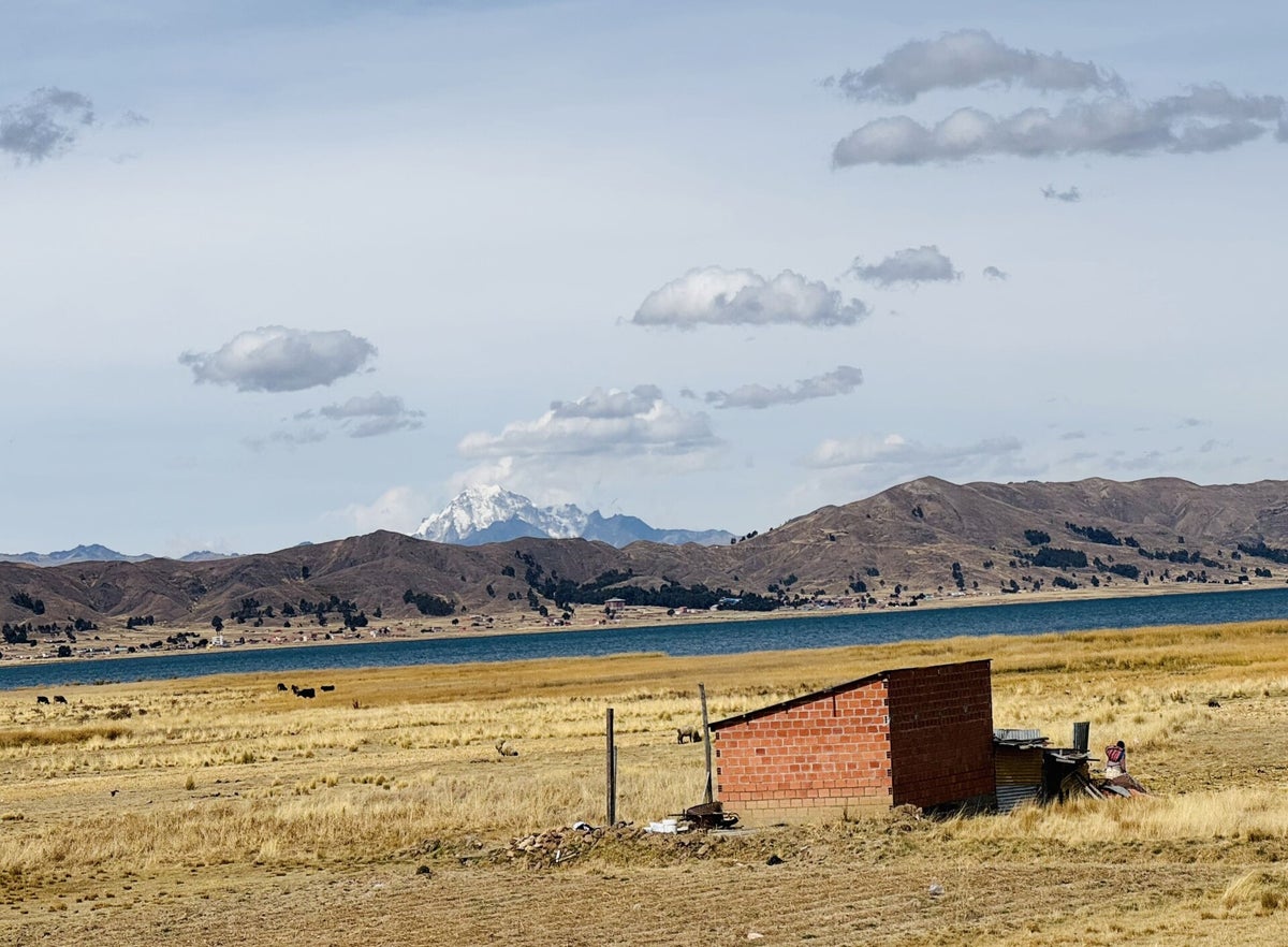Ausführlich frühstücken und telefonieren, solange wir Wifi haben und dann verlassen wir Copacabana gegen Mittag. Am Titicacasee entlang, die Strassen sind etwas schlechter als bisher, erreichen wir schon bald die Fähre von San Pedro de Tiquina nach San Pablo de Tiquina. Die Überfahrt auf der flossähnlichen Fähre dauert bei mässigem Wellengang etwa 15 Minuten. Wieder durchqueren wir dünn besiedeltes Hochland, immer mit Sicht auf den See und plötzlich sehen wir am Horizont die weissen 6'000er der Cordillera Munecas und noch weiter entfernt die Cordillera Real.