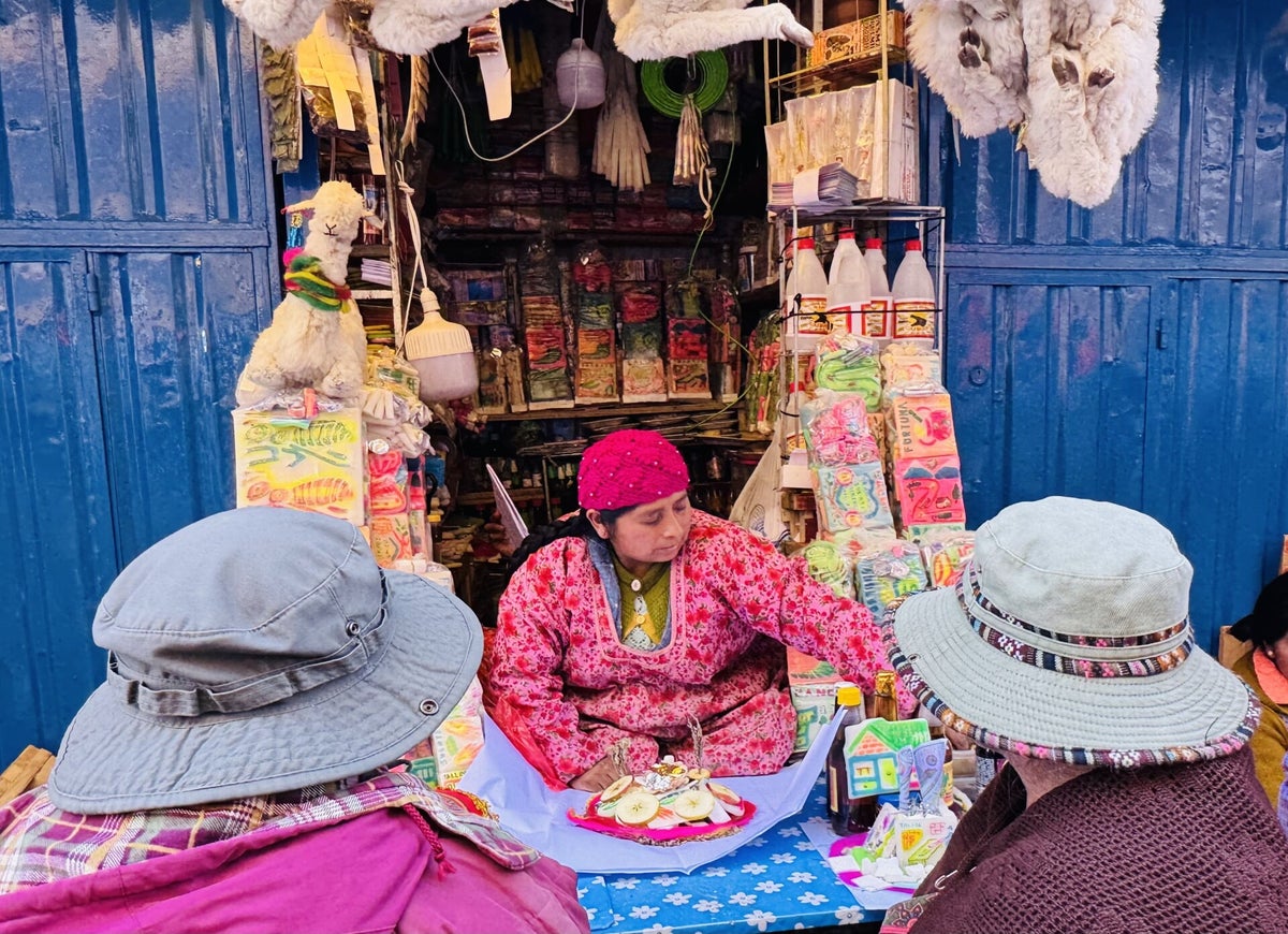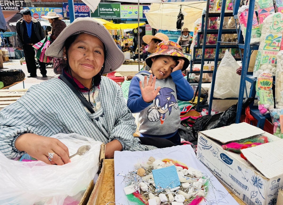 Seit Peru bestaunen wir die speziell gekleideten Cholitas; so werden indigene Frauen in Peru und Bolivien bezeichnet. Die Kleidung der Cholitas besteht aus der Pollera (Überrock), bis zu 10 Unterröcken, dem Schultertuch und dem typischen Hut. Meist erscheinen die Cholitas durch die vielen Stofflagen rundlich bis übergewichtig. Ein Cholita-Rock besteht aus 6 – 8 Metern Stoff!