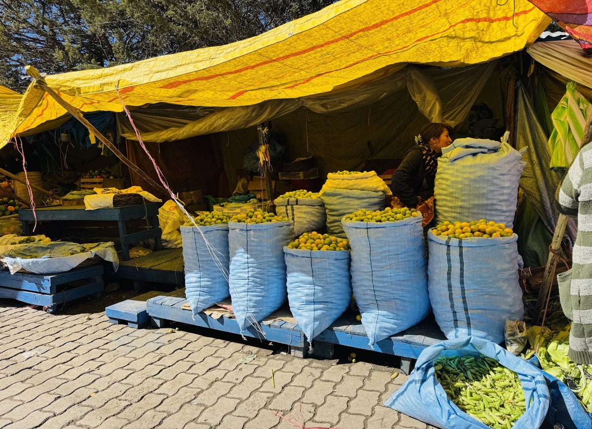 Gegen Mittag verlassen wir Uyuni, nachdem wir uns auf dem Markt mit Früchten eingedeckt haben.
