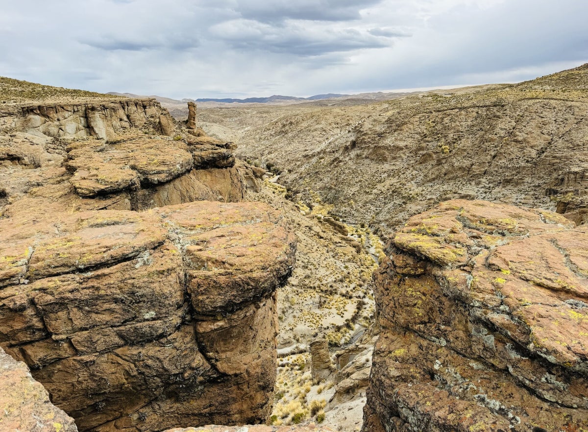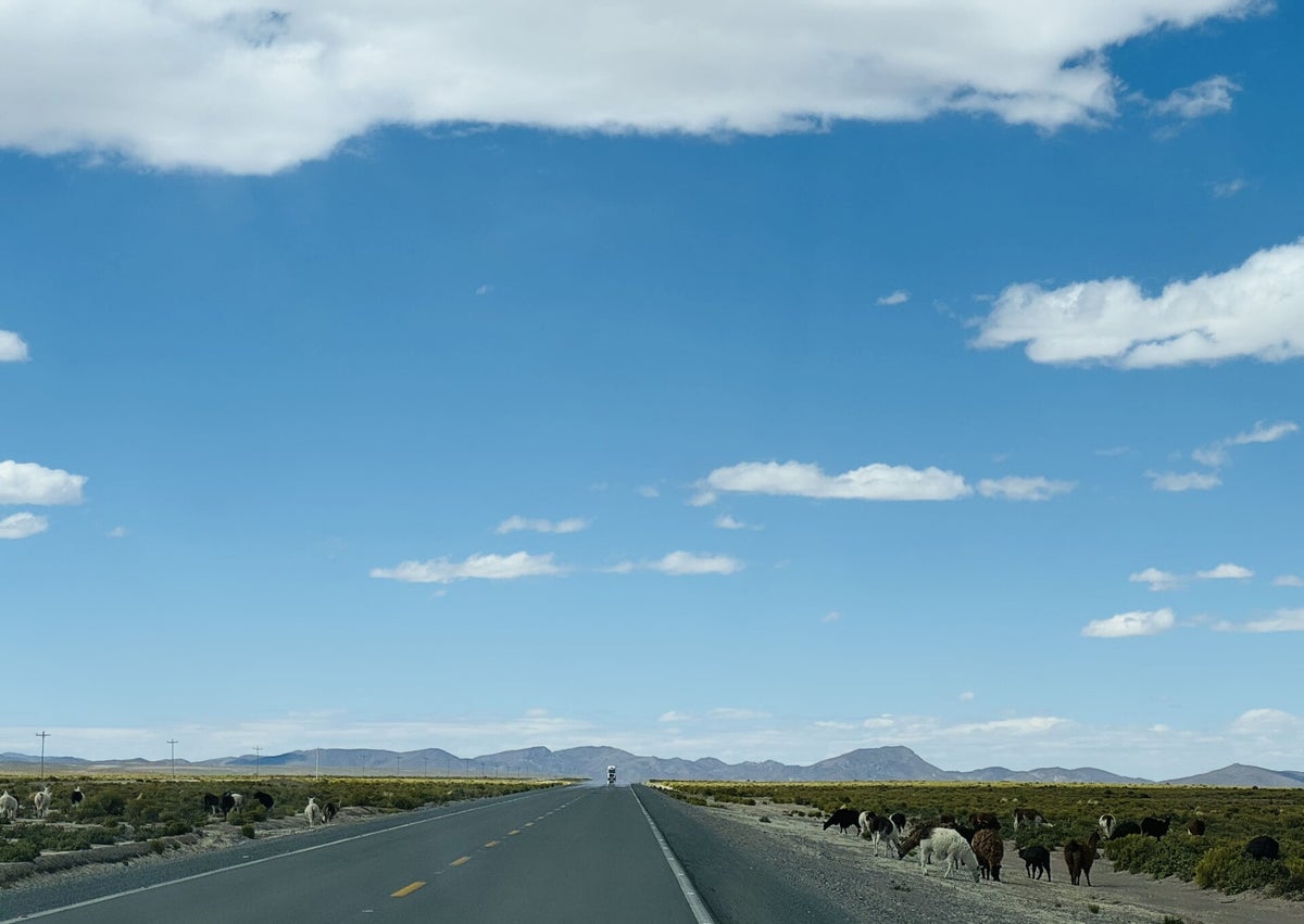 Die Strecke von Oruro nach Uyuni (320 km) zieht sich ausschliesslich über die Anden-Hochebene, welche bis auf einige Dörfer unbewohnt ist. Viele Herden von Lamas, Alpacas und Vikuñas weiden rechts und links der nicht viel befahrenen Strasse.
