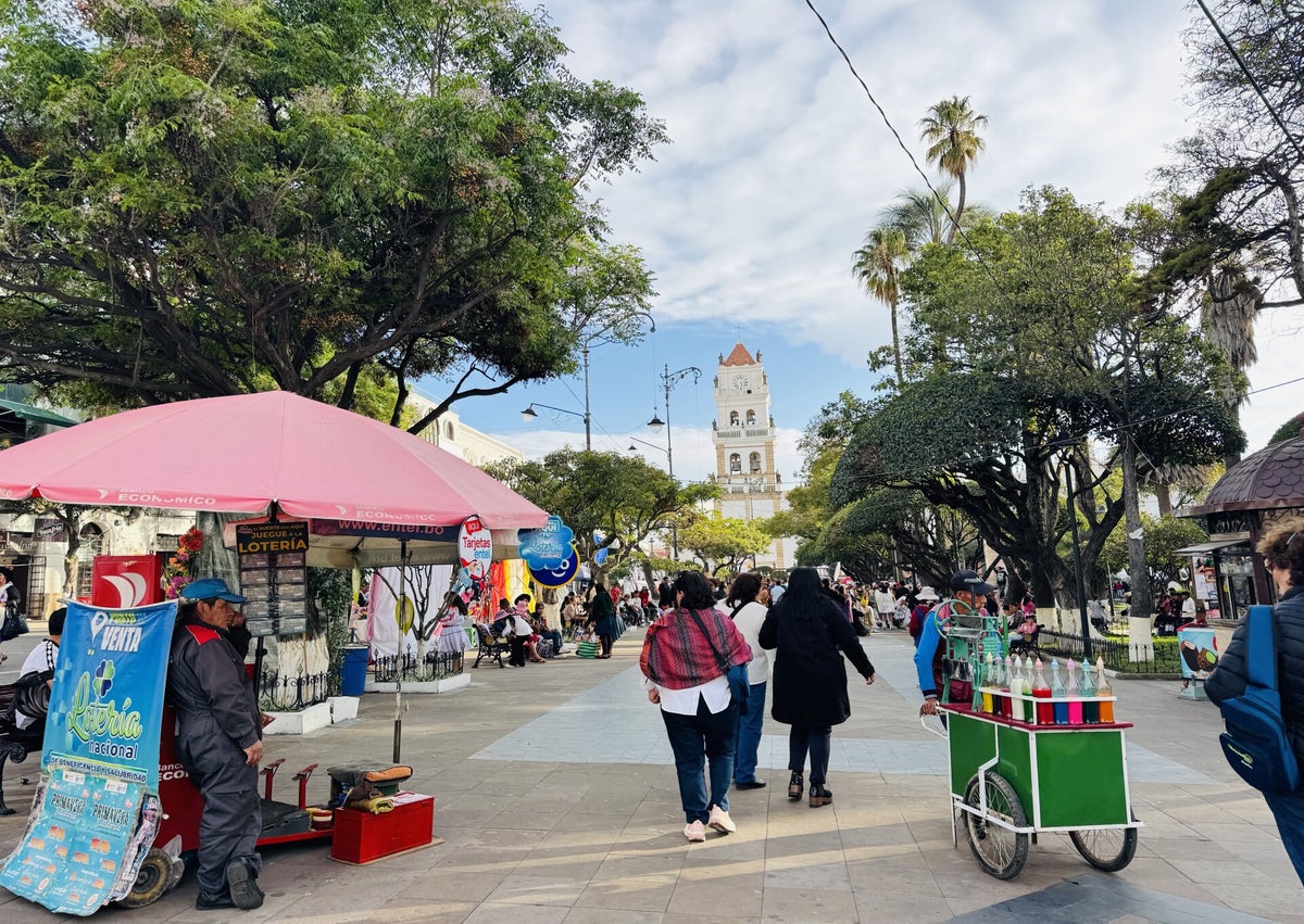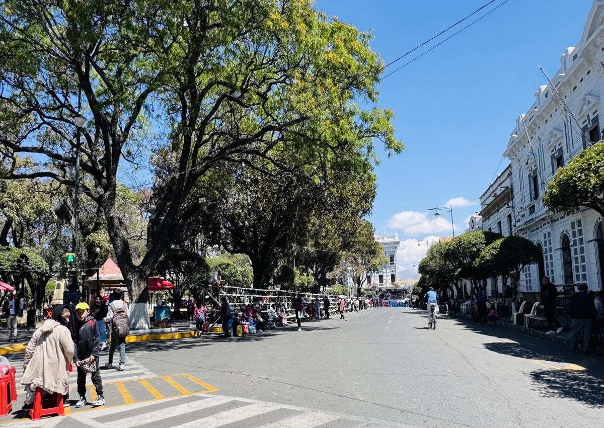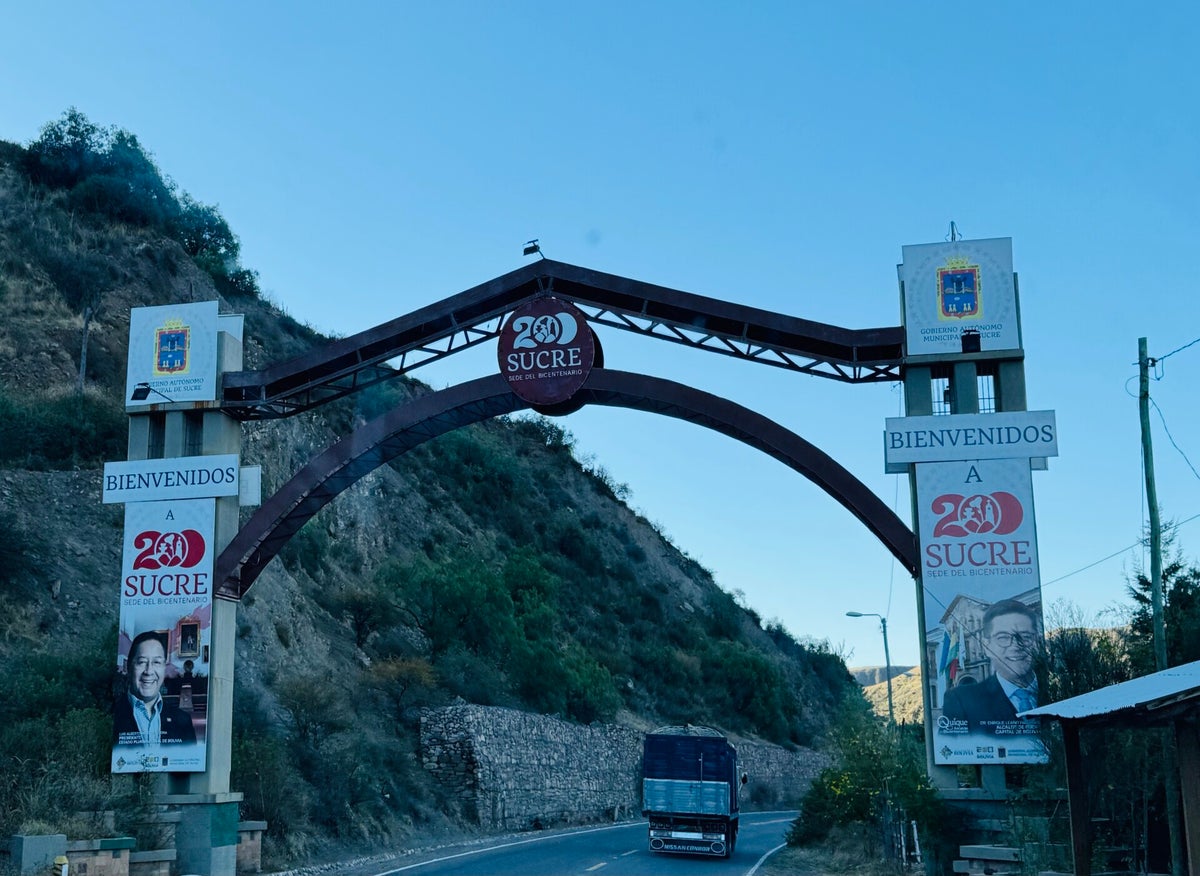 Die heutige Fahrt geht ausnahmsweise nicht bergauf, sondern tendenziell bergab, da Sucre auf nur noch rund 2'800 Metern über Meer liegt. Auf einem Campingplatz im Zentrum der Stadt machen wir es uns bequem.