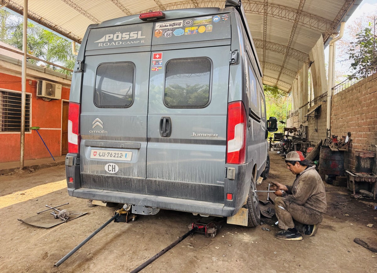 Wir sind uns nicht sicher, ob wir mit diesen Meldungen bis zu unserem Ziel in Paraguay fahren sollen, ohne etwas zu unternehmen... Die Meldung betreffend Bremsen können und wollen wir nicht einfach ignorieren, also fahren wir heute morgen in die nächste Werkstatt, um das Problem anzuschauen. Schliesslich stellt sich heraus, dass die Bremsbeläge noch in Ordnung sind, das Bremsöl jedoch am untersten Limit ist und aufgefüllt werden muss. Mit einem guten Gefühl betreffend Camper, sind wir froh, am Nachmittag die Stadt bei 39° C zu verlassen!